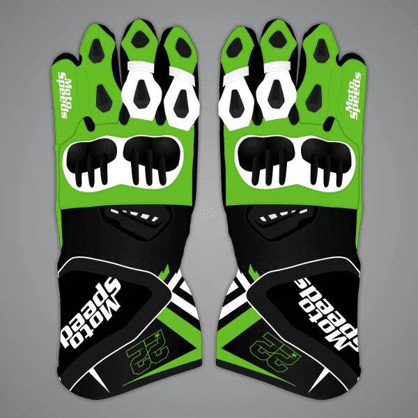 Alex Lowes Black and Green Motorcycle Gloves 2024